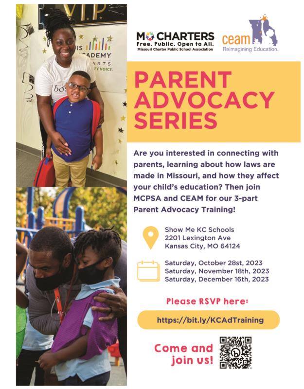 The 2024 Legislative session in Missouri is just around the corner, kicking off in January. To prepare for this important time, CEAM (Children's Education Alliance of Missouri) and MCPSA (Missouri Charter Public School Association) invite you to join a comprehensive 3-part series from October to December. Their goal is to equip you with the knowledge and tools necessary to advocate effectively for education both at the state capitol and from the comfort of your own home. Sessions will be held in both Kansas City and St. Louis, Missouri. Understanding Advocacy: We'll delve into the fundamentals of advocacy and why it matters. The Legislative Process: Learn how a bill becomes a law and how you can play a pivotal role in shaping policy. Crafting Your Personal Story: Discover the art of crafting a compelling personal story that resonates with decision-makers. Education Policy Insights: Gain insights into the policies that have the potential to significantly impact education in Missouri. *All sessions include childcare, lunch and a $25 gift card for each session attended.*