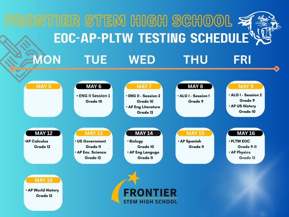📝 End-of-Course (EOC) Exams: May 6–19 at Frontier STEM High School